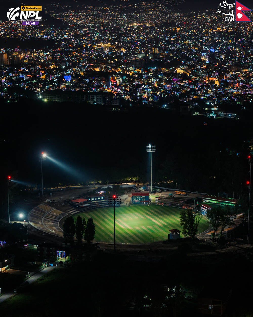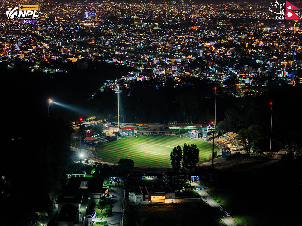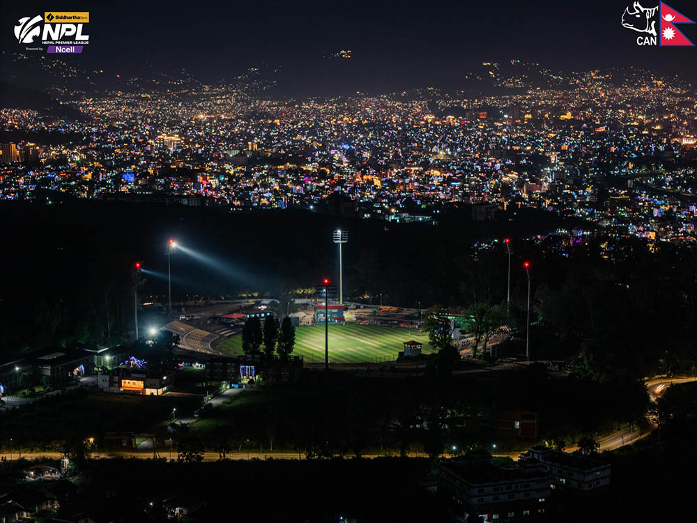 काठमाडौँ । तिहारको लक्ष्मी पुजाको साँझ किर्तिपुर स्थित टियु क्रिकेट मैदानको सुन्दर दृश्य अन्यन्तै सुन्दर देखिएको छ । निर्माण अन्तिम चरणमा रहेको मैदानमा फ्लडलाइटका ६ वटै टावर ठड्याइएर अहिले लाइटको परिक्षण भइरहेको छ ।
