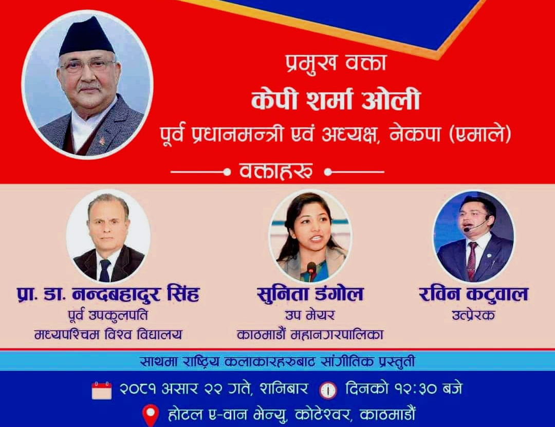पार्टी अध्यक्ष एवम् वेटिङ प्रधानमन्त्री केपी शर्मा ओलीको प्रमुख आतिथ्यतामा कोटेश्वरस्थित होटेल ए–वान भेन्युमा आयोजना हुने सो कार्यक्रममा बागमती प्रदेशका सबै जिल्लाबाट एसईई उत्तीर्ण हुने करिब दुई हजार जना विद्यार्थीलाई एकसाथ सम्मान गर्न लागिएको सम्पर्क कमिटीका अध्यक्ष अशोक कुमार ठकुरीले जारी दिए ।