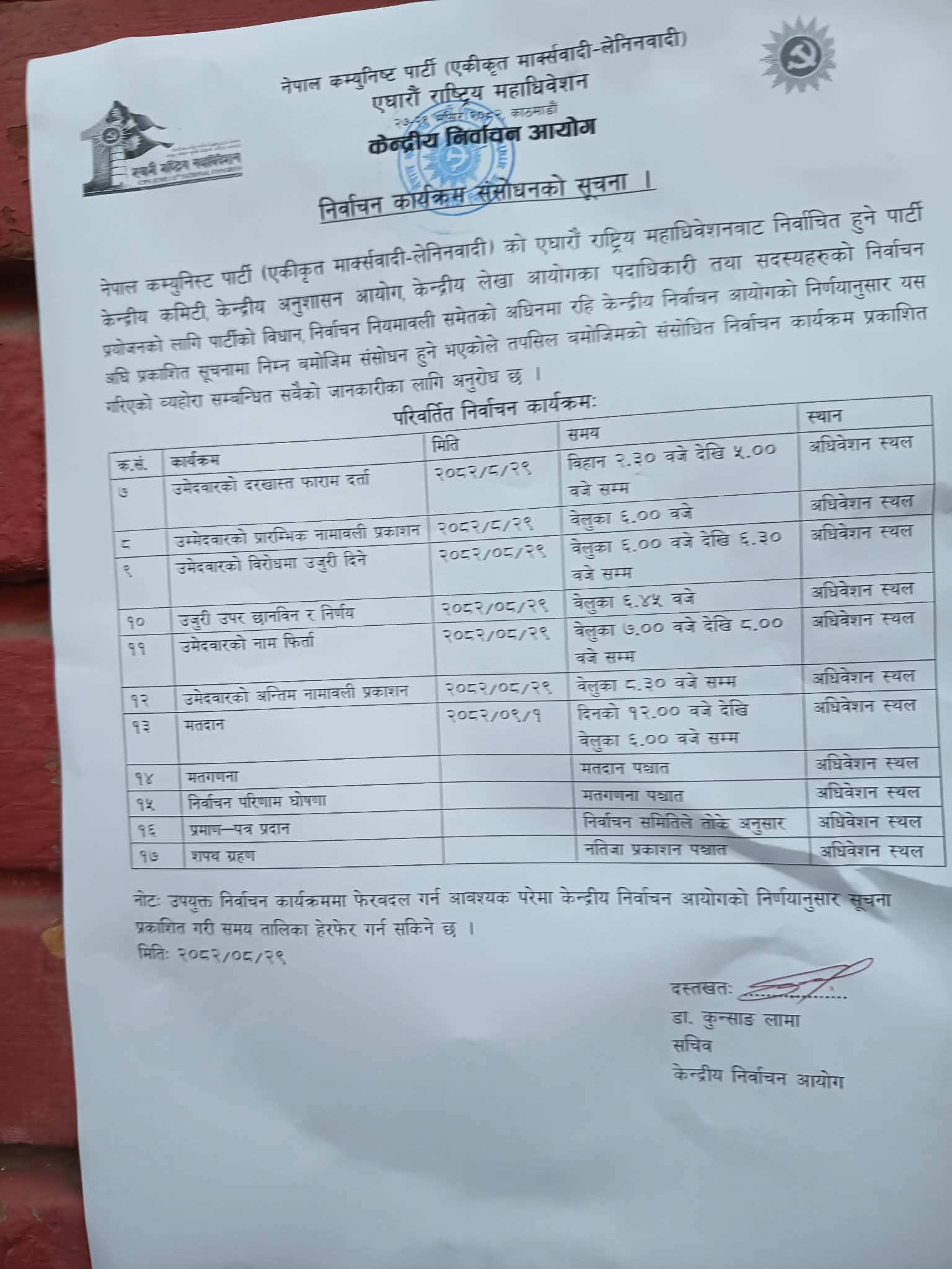 त्यसपछि मंगलबार बिहान १२ देखि साँझ ६ बजेसम्म मतदान गर्नेगरी कार्यतालिका संशेधन गरिएको केन्द्रीय निर्वाचन आयोगका सचिव कुन्साङ लामाले जानकारी दिए ।