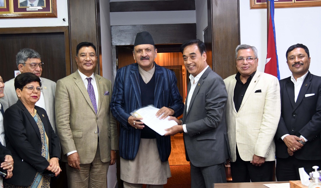 अध्यक्ष राजेन्द्र मल्लसहितको प्रतिनिधिमण्डलले सिहंदरबारस्थित अर्थ मन्त्रालयमा अर्थमन्त्री डा. महतसंग बधाई भेटवार्ता गरेको हो। चेम्बरले भनेको छ, ‘करको दर वृद्धि गर्नुभन्दा करको दायरा बढाइनुपर्दछ। यसका लागि नागरिकतासंगै प्यानकार्डको पनि व्यवस्था गरिनुपर्दछ।’