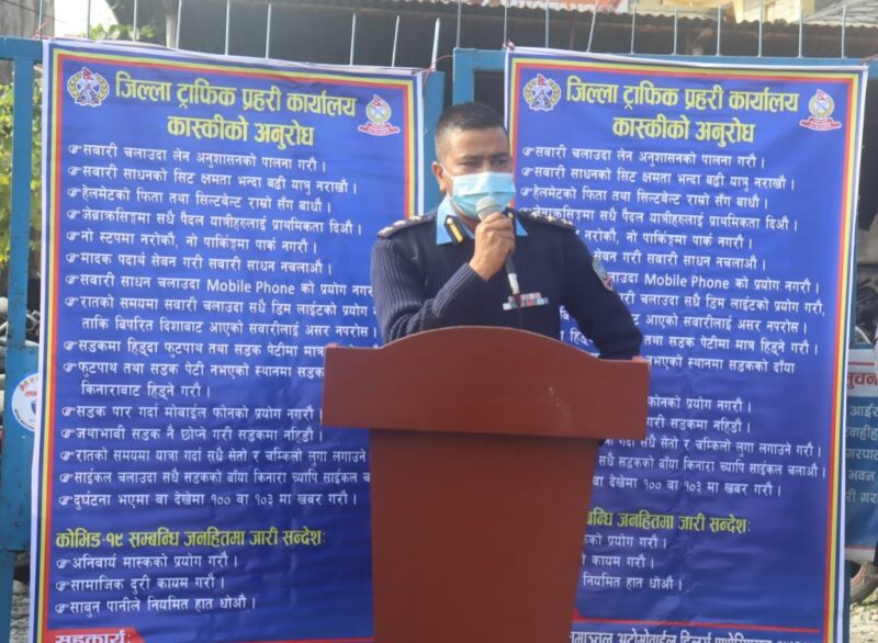 साे अवसरमा सवारी चालकले ध्यान दिनु पर्ने, यात्रुहरुले बस चढ्दा ओर्लदा ख्याल गर्नुपर्ने, पैदल यात्रीहरुले सडकपार गर्दा ध्यान दिनुपर्ने कुराहरु लगायत समेटिएका विभिन्न सचेतनामुलक पर्चाहरु वितरण गरिएकाे थियाे ।