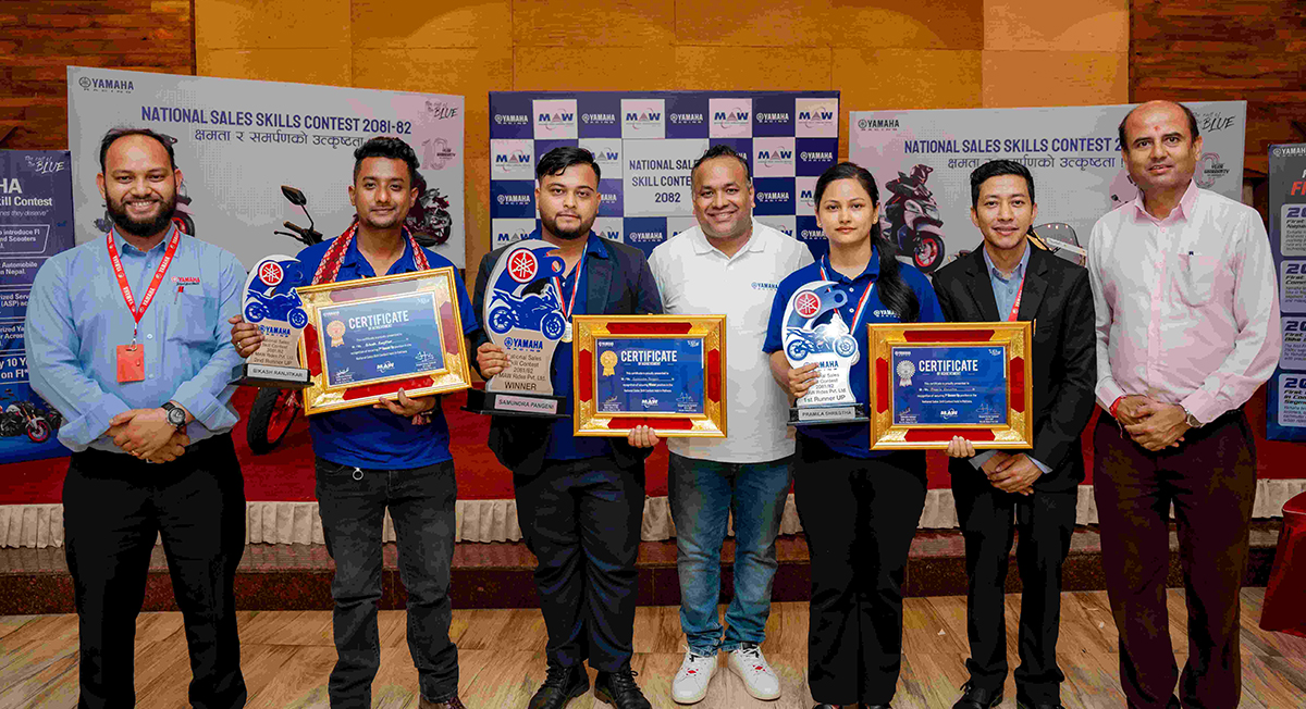 सबै नेशनल फाइनलिस्टहरूलाई उनीहरूको मेहनत, पेशागत प्रतिबद्धता र यामाहाको ‘कस्टमर फर्स्ट’ फिलोसोफीप्रति समर्पणको कदरस्वरूप प्रमाणपत्र, ट्रफी र पदक प्रदान गरियो ।